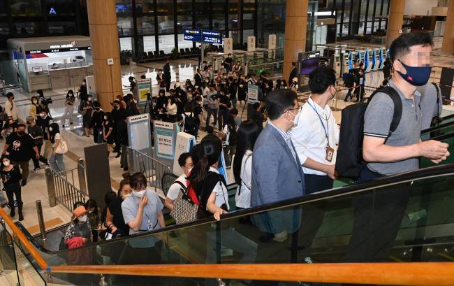 김포∼하네다 항공노선 운항이 2년 3개월 만에 재개된 29일 서울 강서구 김포국제공항에서 출국 수속을 마친 탑승객들이 출국장으로 이동하고 있다.