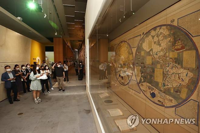 (서울=연합뉴스) 진연수 기자 = 29일 서울 종로구 서울역사박물관에서 개관 20주년을 맞아 개편 공사를 마치고 재개관을 앞둔 상설전시실을 찾은 참석자들이 전시를 관람하고 있다. 2012년 개관 10주년을 맞아 전면 개편한 이후 10년 만에 개편된 상설전시실에서는 조선의 수도가 된 1394년 이래 대한제국기와 일제강점기를 거쳐 현대에 이르기까지 서울의 역사를 만나볼 수 있다. 2022.6.29