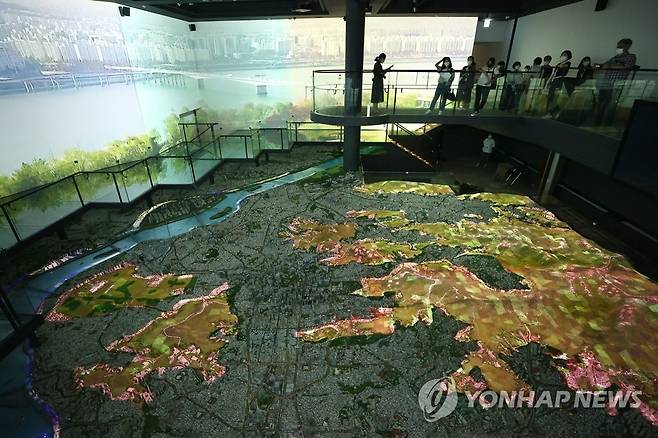 (서울=연합뉴스) 진연수 기자 = 29일 서울 종로구 서울역사박물관에서 개관 20주년을 맞아 개편 공사를 마치고 재개관을 앞둔 상설전시실을 찾은 참석자들이 전시를 관람하고 있다. 2012년 개관 10주년을 맞아 전면 개편한 이후 10년 만에 개편된 상설전시실에서는 조선의 수도가 된 1394년 이래 대한제국기와 일제강점기를 거쳐 현대에 이르기까지 서울의 역사를 만나볼 수 있다. 2022.6.29