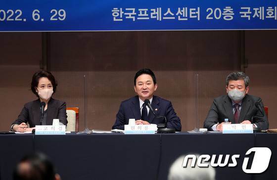 (서울=뉴스1) 박세연 기자 = 원희룡 국토교통부 장관이 29일 서울 중구 한국프레스센터에서 열린 국토교통부 장관 관훈클럽 초청토론회에서 발언을 하고 있다. 2022.6.29/뉴스1