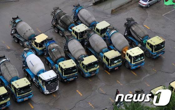 레미콘운송노동조합은 레미콘 운송거부(쟁의행위)와 관련한 찬반 투표를 진행한 결과 투표 참여 조합원수(6천556명)의 82.7%가 찬성해 7월1일부터 전면 파업에 들어가기로 했다고 밝혔다. 레미콘운송노조는 현재 운송료를 회당 5만 6천 원에서 7만 1천 원으로 1만 5천 원(약 27%) 인상해줄 것과 요소수 비용 전체를 제조사가 부담해줄 것 등을 요구하는 운송료 인상안을 놓고 이날부터 제조사와 협상을 벌일 예정이다. 2022.6.29/뉴스1