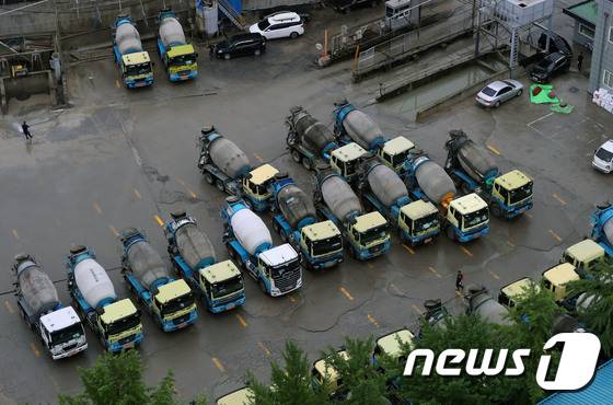 레미콘운송노동조합은 레미콘 운송거부(쟁의행위)와 관련한 찬반 투표를 진행한 결과 투표 참여 조합원수(6천556명)의 82.7%가 찬성해 7월1일부터 전면 파업에 들어가기로 했다고 밝혔다. 레미콘운송노조는 현재 운송료를 회당 5만 6천 원에서 7만 1천 원으로 1만 5천 원(약 27%) 인상해줄 것과 요소수 비용 전체를 제조사가 부담해줄 것 등을 요구하는 운송료 인상안을 놓고 이날부터 제조사와 협상을 벌일 예정이다. 2022.6.29/뉴스1