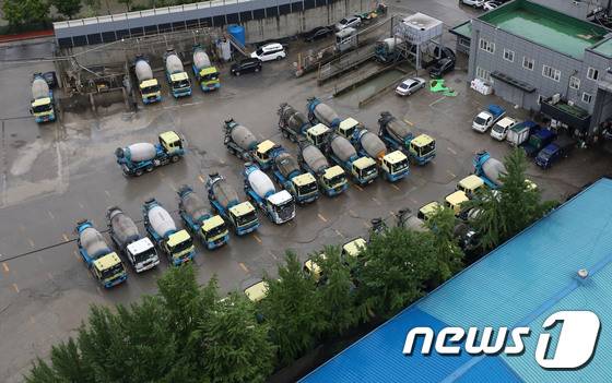 레미콘운송노동조합은 레미콘 운송거부(쟁의행위)와 관련한 찬반 투표를 진행한 결과 투표 참여 조합원수(6천556명)의 82.7%가 찬성해 7월1일부터 전면 파업에 들어가기로 했다고 밝혔다. 레미콘운송노조는 현재 운송료를 회당 5만 6천 원에서 7만 1천 원으로 1만 5천 원(약 27%) 인상해줄 것과 요소수 비용 전체를 제조사가 부담해줄 것 등을 요구하는 운송료 인상안을 놓고 이날부터 제조사와 협상을 벌일 예정이다. 2022.6.29/뉴스1