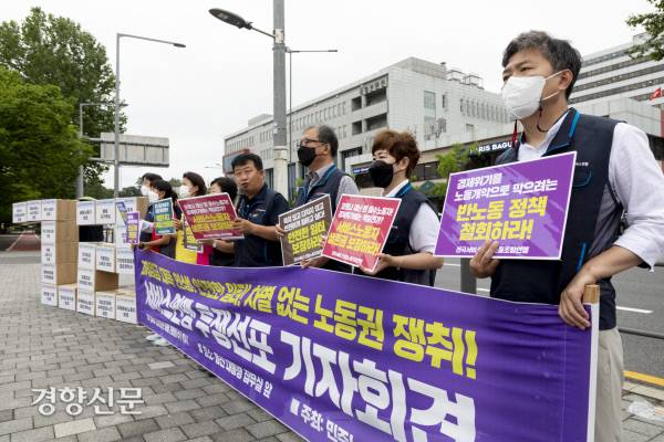 전국서비스산업노조, 차별없는 노동권 쟁취 기자회견[경향포토]