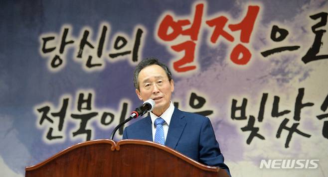 [전주=뉴시스] 김얼 기자 = 송하진 전북도지사가 29일 전북 전주시 전북도청 공연장에서 열린 퇴임식에서 퇴임사를 하고 있다. 2022.06.29. pmkeul@newsis.com