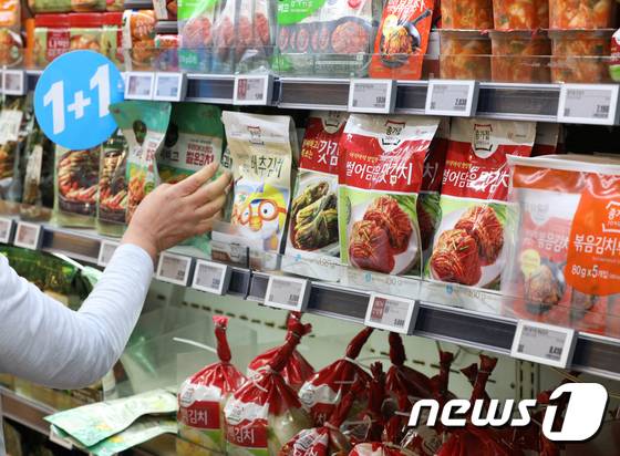 사진은 29일 서울의 한 대형마트에서 시민들이 김치를 구매하는 모습.