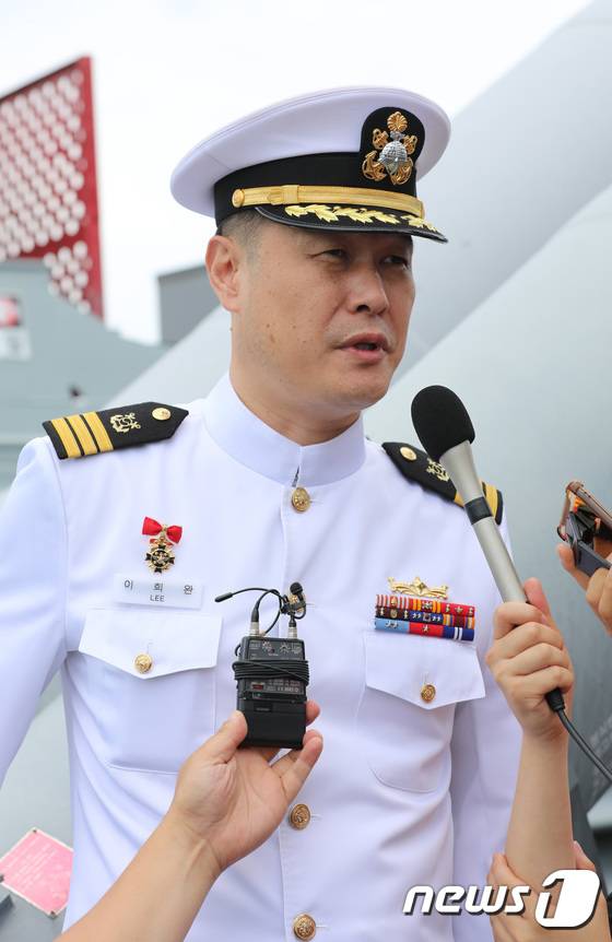 (평택=뉴스1) 김영운 기자 = 제2연평해전 승전 20주년 기념식이 열린 29일 오후 경기도 서해 해상에서 제2연평해전 참전장병 이희완 중령이 유도탄고속함(PKG) '윤영하함'을 타고 인터뷰를 하고 있다. 2022.6.29/뉴스1