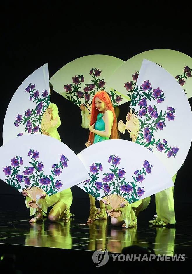 (서울=연합뉴스) 류효림 기자 = 가수 선미가 29일 오후 서울 마포구 서교동 신한pLay 스퀘어에서 열린 새 앨범 '열이올라요' 발매기념 쇼케이스에서 앨범 수록곡 무대를 선보이고 있다. 2022.6.29