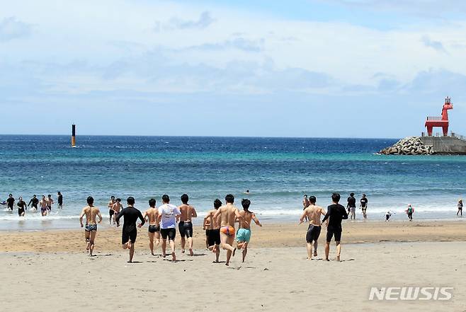 [제주=뉴시스] 우장호 기자 = 제주 도내 해수욕장 개장을 이틀 앞둔 29일 오후 제주시 이호해수욕장에서 수상안전요원 교육이 진행되고 있다. 제주도는 거리두기 해제로 피서객이 지난해보다 많이 찾을 것으로 예상, 안전요원 및 장비를 지난해보다 늘려 운용할 계획이다. 2022.06.29. woo1223@newsis.com
