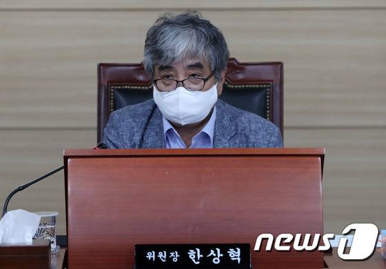 (과천=뉴스1) 박세연 기자 = 한상혁 방송통신위원장이 29일 경기도 과천 방통위청사에서 열린 방송통신위원회 제31차 전체회의에서 모두발언을 하고 있다. 2022.6.29/뉴스1