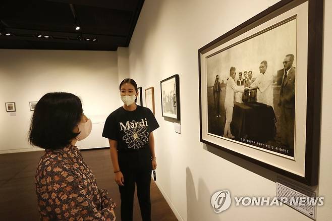 (서울=연합뉴스) 진연수 기자 = 29일 서울 종로구 인사아트센터에서 열린 한국마사회 말박물관 특별전 '한국경마 100년 신바람 100선'을 찾은 시민들이 전시를 관람하고 있다. 이번 특별전에는 1897년 국내에서 개최된 나귀경주를 비롯해 해마다 전국 9개 공인경마장을 돌며 진행된 춘계와 추계 경마 사진, 항아리처럼 생긴 우승 트로피, 김구와 이승만 등 주요 국가 지도자들의 경마장 방문 등의 자료가 소개된다. 2022.6.29