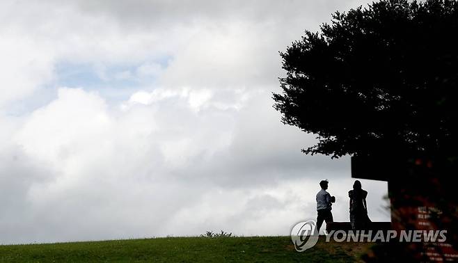 (함안=연합뉴스) 김동민 기자 = 29일 오후 경남 함안군 가야읍 '함안 말이산고분군' 일대 하늘에 많은 구름이 보인다. 2022.6.29