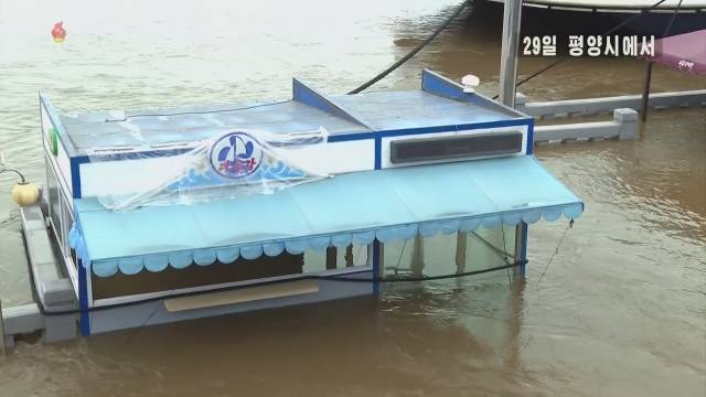 중앙TV가 공개한 영상에 따르면 평양 인민문화궁전 바로 옆 보통강 수위가 불어나 인도까지 넘쳐나 나무들도 잠겼다.