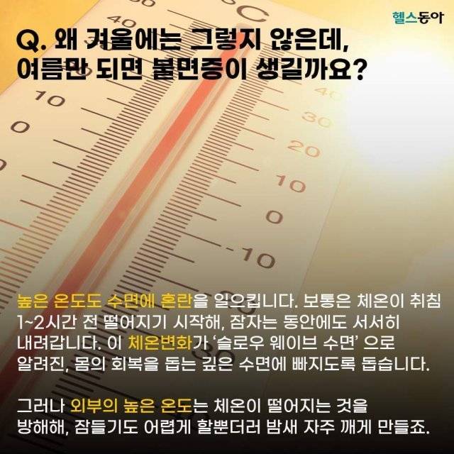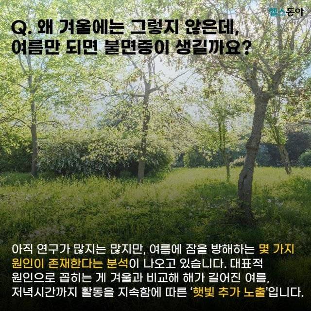 Q. 왜 겨울에는 그렇지 않은데, 여름만 되면 불면증이 생길까요?