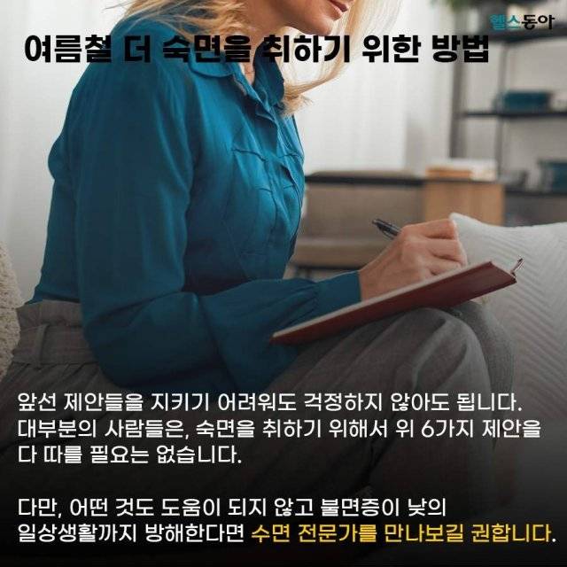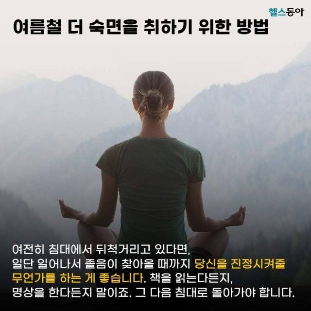 여름철 불면증을 벗어나기 위한 방법이 아예 없는 것은 아닙니다. 몇 가지 시도해볼만한 방법을 소개합니다.