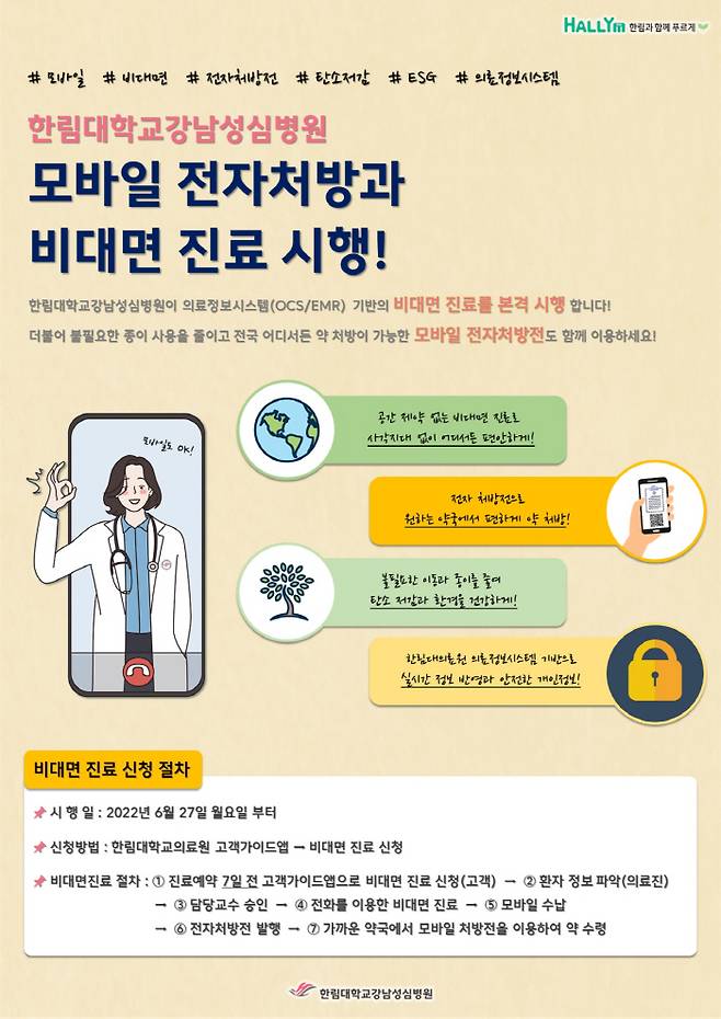 특히 한림대강남성심병원 비대면 진료는 모바일진료비수납, 모바일전자처방전을 하나로 환자가 병원에 방문하지 않아도 의료서비스를 받을 수 있어 의료취약지 등 의료사각지대에 놓인 국내외 환자까지 포용할 수 있게 된다.