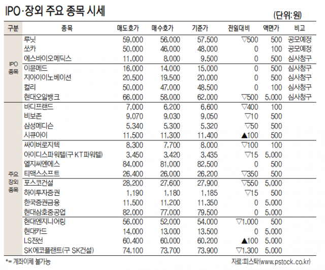[표]IPO장외 주요 종목 시세(6월 29일)