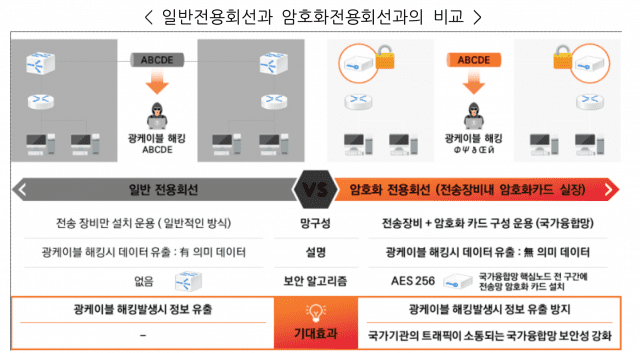 이번에 적용한 양자암호통신(QKD) 적용 구간은 국가융합망 백본망 중 핵심노드 전송구간이다.