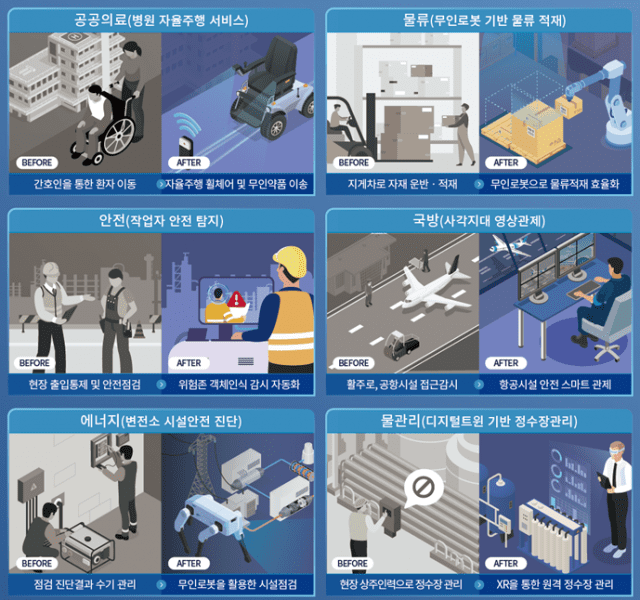 이 가운데 7개 과제 총 400억이 투입되는 공공부문 실증사업은 의료, 물류, 에너지 등의 분야에서 5G 융합서비스를 적용해 디지털 전환을 촉진하기 위해 추진된다.