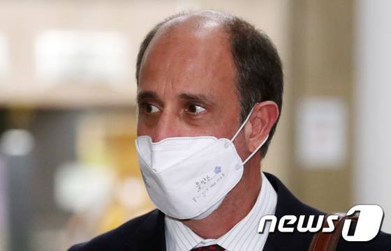 (서울=뉴스1) 김명섭 기자 = 토마스 오헤아 킨타나 유엔 북한인권특별보고관이 29일 오후 서울 종로구 세종대로 정부서울청사에서 권영세 통일부 장관과 김기웅 통일부 차관을 접견을 하기 위해 이동하고 있다. 2022.6.29/뉴스1