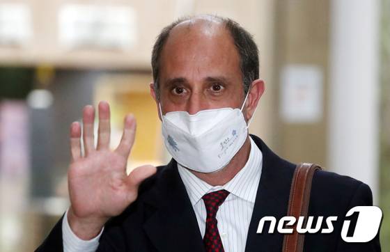 (서울=뉴스1) 김명섭 기자 = 토마스 오헤아 킨타나 유엔 북한인권특별보고관이 29일 오후 서울 종로구 세종대로 정부서울청사에서 권영세 통일부 장관과 김기웅 통일부 차관을 접견을 하기 위해 이동하고 있다. 2022.6.29/뉴스1