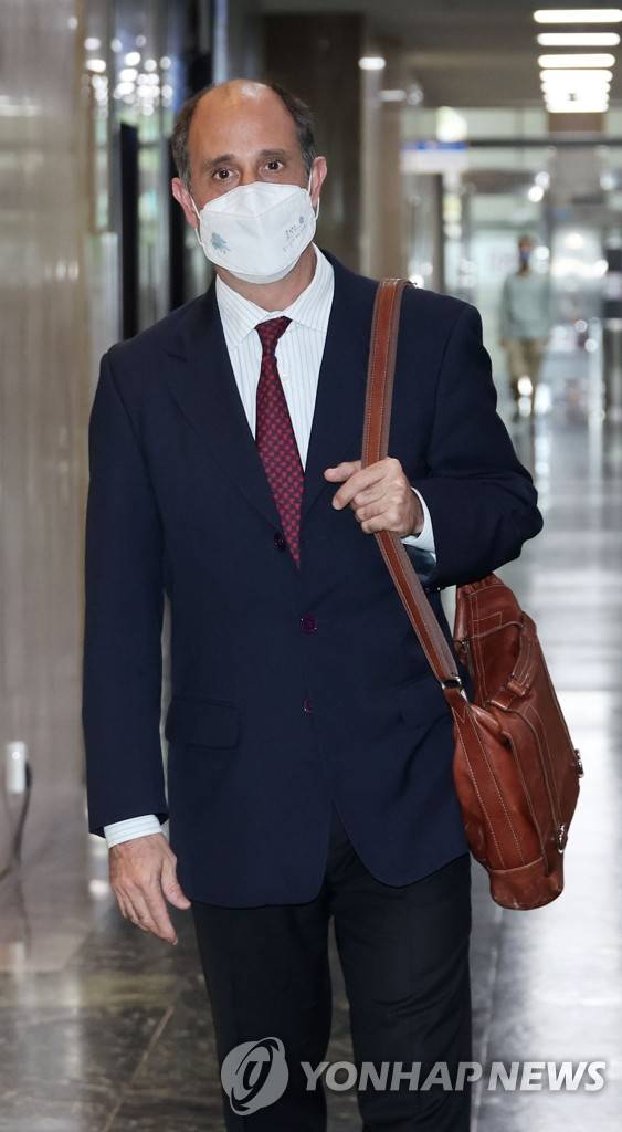 (서울=연합뉴스) 김승두 기자 = 토마스 오헤아 킨타나 유엔 북한인권특별보고관이 29일 오후 권영세 통일부 장관과 면담을 위해 청사로 들어서고 있다. 2022.6.29
