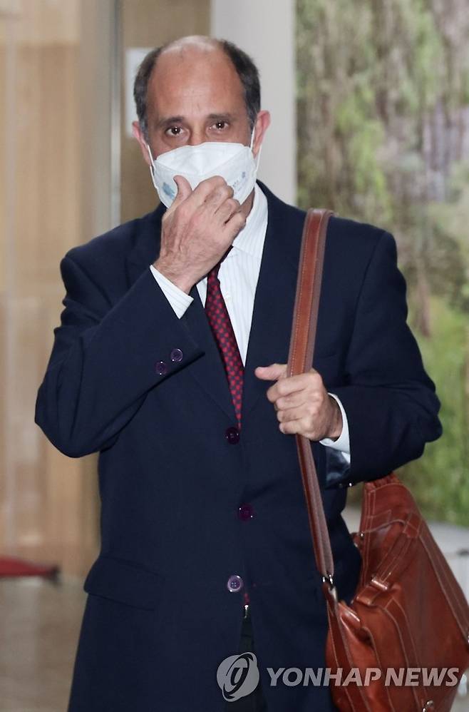 (서울=연합뉴스) 김승두 기자 = 토마스 오헤아 킨타나 유엔 북한인권특별보고관이 29일 오후 권영세 통일부 장관과 면담을 위해 청사로 들어서고 있다. 2022.6.29