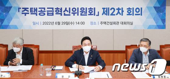 (서울=뉴스1) = 원희룡 국토교통부 장관이 29일 오후 서울 영등포구 주택건설회관에서 열린 '주택공급혁신위원회' 제2차 회의에서 모두발언 하고 있다. (국토교통부 제공) 2022.6.29/뉴스1