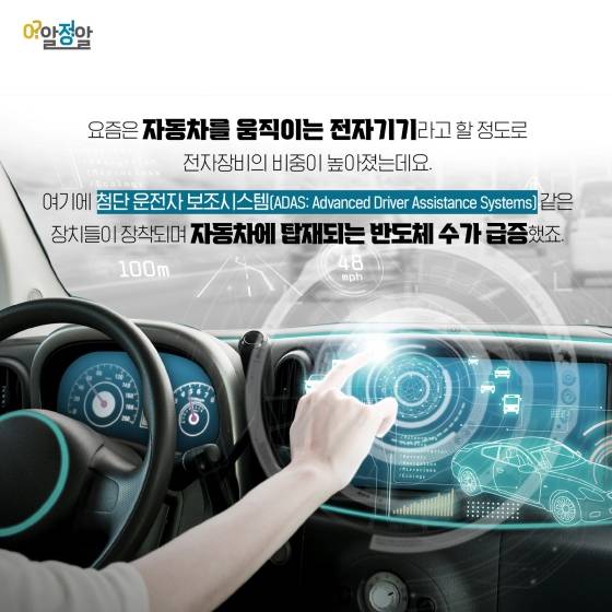 일반 자동차 기준 평균 200~300개, 전기차는 1000개, 자율주행 자동차에는 2000개 이상의 차량용 반도체가 사용될 정도랍니다.