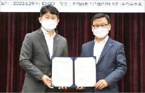 이원덕 우리은행장(오른쪽)과 유광열 SGI서울보증 사장이 29일 서울 소공로 우리금융디지털타워에서 ‘중소기업 공급망 금융지원 업무협약’을 맺었다. 이번 협약에 따라 우리은행은 오는 9월 출시하는 디지털 공급망 플랫폼 ‘원비즈플라자’에서 전자구매 계약을 맺는 우수 협력 중소기업을 대상으로 SGI서울보증 보증서를 기반으로 한 전용 대출상품을 제공할 계획이다. 자금 조달에 어려움을 겪는 중소기업이 생산에 필요한 자금을 쉽고 편리하게 지원받도록 한다는 취지다.