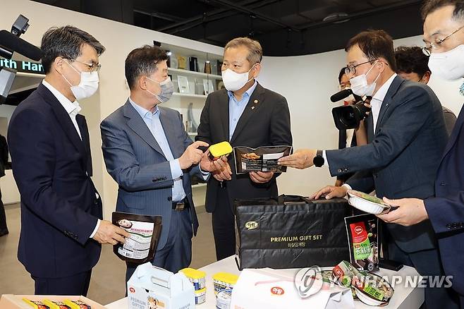 (서울=연합뉴스) 이상민 행정안전부 장관이 29일 오후 전북 군산시 소재 지역기업 공장을 방문해 가공 생산시설 등을 살펴보고 있다. 2022.6.29 [행정안전부 제공. 재판매 및 DB 금지]