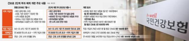 지역 가입자의 보험료 부담은 줄게 됐지만 일부 직장 가입자의 건보료는 증가할 것으로 예상된다. 지금은 임대, 이자·배당, 사업소득 등 월급 외 소득이 3400만 원을 초과하는 경우에만 월급 외 소득에 대해 보험료를 부과한다. 하지만 9월부터는 2000만 원을 초과하면 그 초과분에 보험료를 부과하기 때문이다. 이에 따라 전체 직장 가입자의 약 2%인 45만 명의 건보료가 33만 8000원에서 38만 9000원으로 5만 1000원 인상될 것이라는 게 복지부의 추산이다.