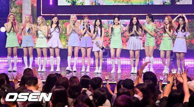 이달의 소녀 (LOONA) 멤버들이 1위를 한 후 팬들과 기쁨을 나누고 있다. 2022.06.29 /rumi@osen.co.kr