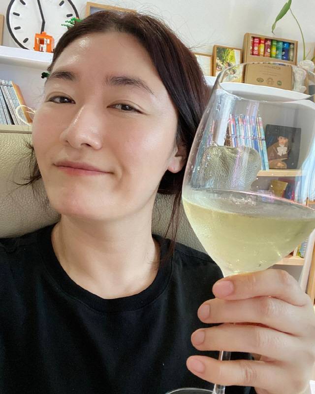 김미려는 29일 자신의 인스타그램에 "어디보는 거야? 와인 먹는 중입니다. (남편이)계속 장마라서 꿉꿉하다고 옷을 안 입는다"라는 글과 함께 사진을 게재했다.