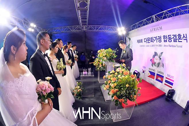 (MHN스포츠 파주, 박태성 기자) 29일 경기 파주시 광탄면에 위치한 서원힐스 아모르 레인보우터널(사랑의 무지개 터널)에서 200명의 하객이 참석한 가운데 '제8회 다문화 무료합동 결혼식'이 열렸다.