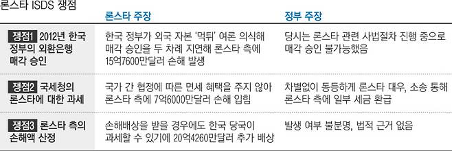 론스타는 2012년 한국 정부의 결정 때문에 손해를 봤다며 투자자·국가 간 중재(ISDS)를 신청했다.