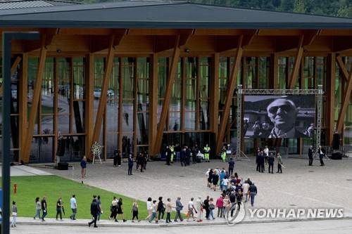 epa10041188 Relatives and friends of the founder and chairman of eyeglasses manufacturer Luxottica, Leonardo Del Vecchio, attend his funeral at the funeral home set up inside the Palaluxottica, a structure located a short distance from the main factory, in Agordo, near Belluno, Italy, 29 June 2022. Leonardo Del Vecchio died on 27 June 2022 at the age of 87. EPA/Andrea Solero