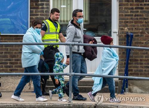 epa10041175 Border Force Officials escort migrants that crossed the English Channel from France to Dover, Britain, 29 June 2022. Under a scheme designed to crack down on migrants landing on British shores after crossing the Channel in small boats, the UK intends to provide those deemed to have arrived unlawfully with a one-way ticket to Rwanda. It is estimated that more than 12,000 people have crossed the Channel in 2022 compared to 5,654 in 2021 by this date. EPA/STUART BROCK