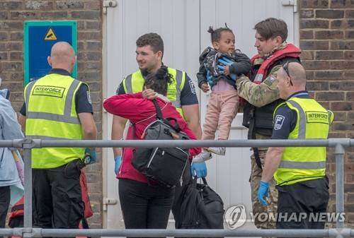 epa10041143 Border Force Officials control migrants that crossed the English Channel from France to Dover, Britain, 29 June 2022. Under a scheme designed to crack down on migrants landing on British shores after crossing the Channel in small boats, the UK intends to provide those deemed to have arrived unlawfully with a one-way ticket to Rwanda. It is estimated that more than 12,000 people have crossed the Channel in 2022 compared to 5,654 in 2021 by this date. EPA/STUART BROCK