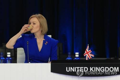 epa10041063 Britain's Foreign Secretary Elizabeth Truss reacts during the meeting of Women Foreign and Defence Ministers from Allied Countries on the first day of the NATO Summit at IFEMA Convention Center, in Madrid, Spain, 29 June 2022. Heads of State and Government of NATO's member countries and key partners are gathering in Madrid from 29 to 30 June to discuss security concerns like Russia's invasion of Ukraine and other challenges. Spain is hosting 2022 NATO Summit coinciding with the 40th anniversary of its accession to NATO. EPA/ZIPI