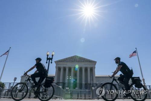 Security bicycles past the Supreme Court, Wednesday, June 29, 2022, in Washington. (AP Photo/Jacquelyn Martin)