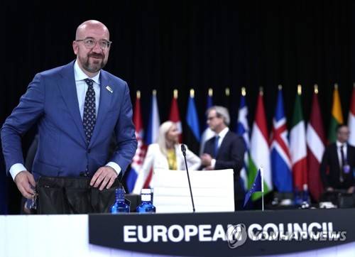 European Council President Charles Michel arrives for a round table meeting at a NATO summit in Madrid, Spain on Wednesday, June 29, 2022. North Atlantic Treaty Organization heads of state meet for a NATO summit in Madrid from Tuesday through Thursday. (AP Photo/Bernat Armangue)