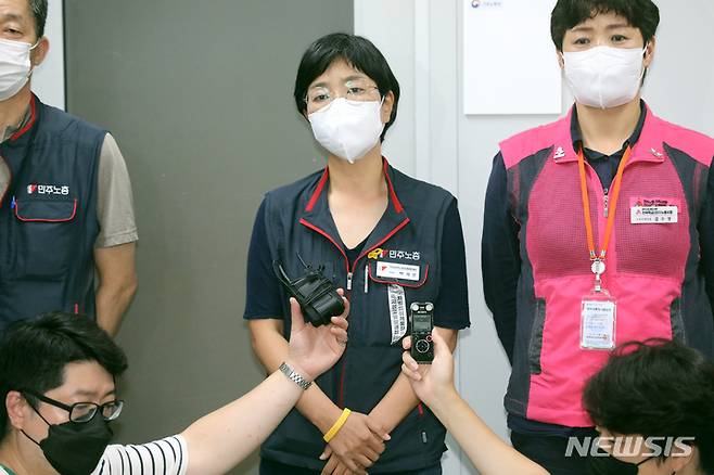 입장 밝히는 박희은 민주노총 부위원장