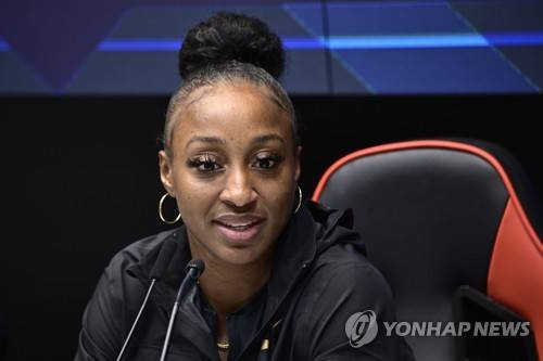 epa10041326 Tokyo 2020 Olympic Games 100m Hurdles Champion Jasmine Camacho-Quinn of Puerto Rico, who will compete at the Swedish Diamond League gala, speaks during a press conference in Stockholm, Sweden on Wednesday, June 29, 2022. The Diamond League in Stockholm will be held on 30 June. EPA/Claudio Bresciani SWEDEN OUT