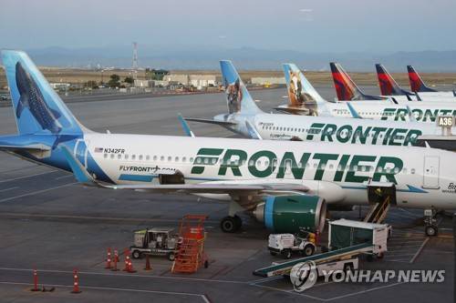 FILE - Frontier Airlines jets sit at gates at Denver International Airport on Sept. 22, 2019, in Denver. Shareholders of Spirit Airlines will vote Thursday, June 29, 2022, on a proposed merger with Frontier Airlines, and the outcome could affect fares for millions of air travelers who depend on the budget airlines. (AP Photo/David Zalubowski, File) FILE PHOTO