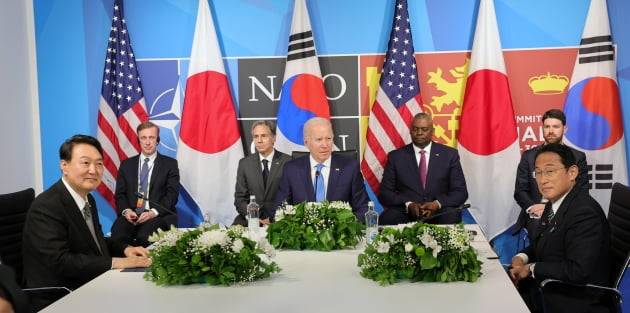 윤 대통령은 이날 스페인 마드리드에서 열린 나토정상회의 계기로 조 바이든 미국 대통령, 기시다 후미오 일본 총리와 만나 북한의 도발과 러시아의 우크라이나 침공 등 국제 정세의 불안전성에 따른 대응방안을 논의했다.