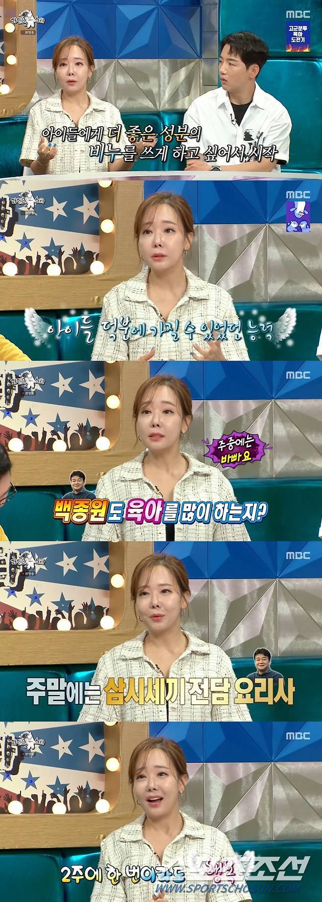 소유진은 "첫째 아이가 좀 아팠다. 심장에 구멍이 뚫린 채 태어나서 젖도 잘 못 먹었다. 아이 입에 음식만 들어가면 뭐든지 해주리라 싶었다. 생각 외로 남편이 이유식에 약하더라. 전혀 감을 못 잡아서 100%제가 떠안게 됐다. 그러면서 아이가 건강해졌다"고 밝혔다.