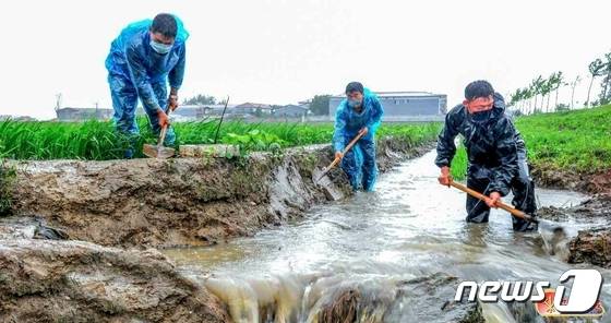 (평양 노동신문=뉴스1) = 북한 노동당 기관지 노동신문은 30일 "각지 농업부문 일꾼들과 근로자들이 배수양수설비 가동, 비배관리대책 마련, 포전둘레 물도랑 치기 등 농작물을 최대로 보호하는데 모를 박고 큰물(훙수) 피해를 막기 위한 투쟁을 긴장하게 벌이고 있다"고 전했다.