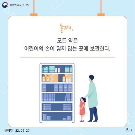 둘째, 모든 약은 어린이의 손이 닿지 않는 곳에 보관한다.