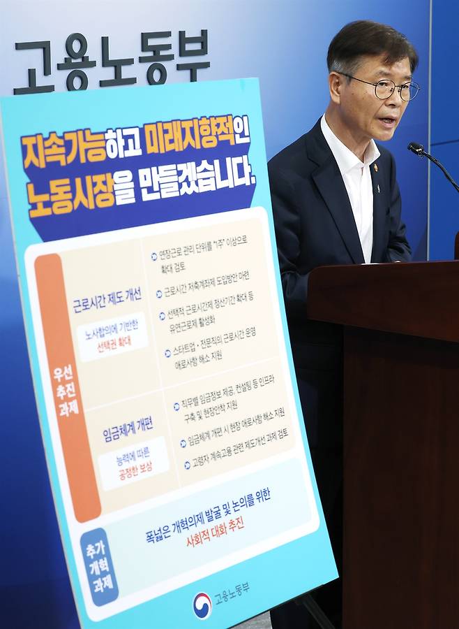 | ▲ 이정식 고용노동부 장관이 지난 23일 오전 정부세종청사에서 노동시장 개혁 추진방향과 관련해 브리핑하고 있다. |